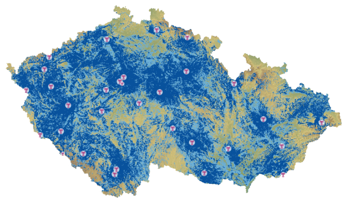 Mapa pokrytí DAB Plus TOP 40